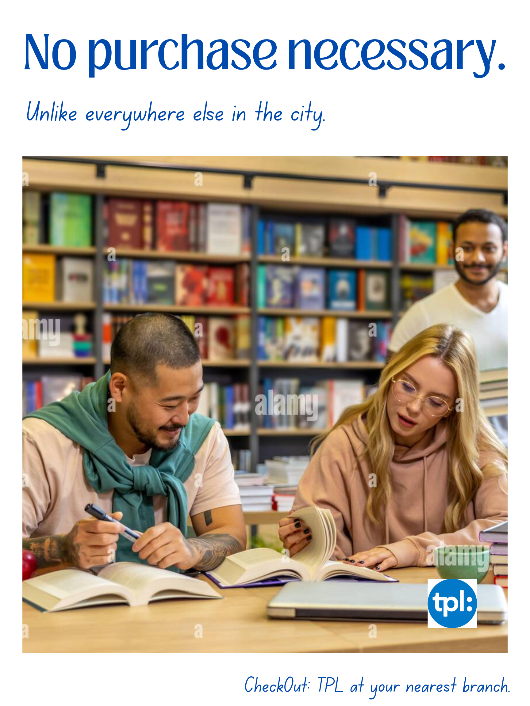 Remind Torontonians that the library is the antidote to transactional city life. A place where you can work, learn, connect, or just be… without a credit card, time limit, or expectation. Position TPL as the original third space that doesn't ask for anything back.